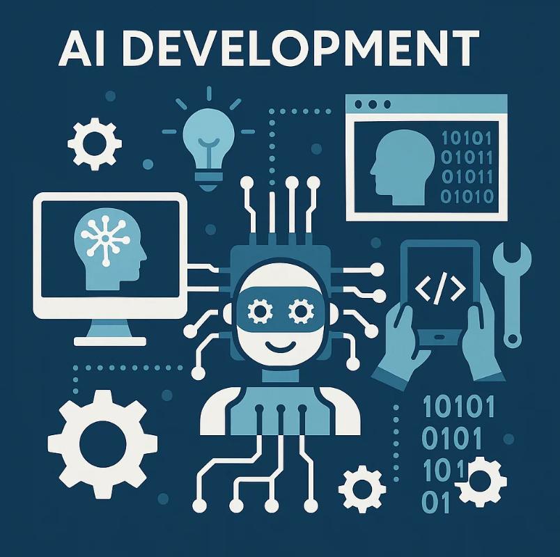 AI development creates intelligent machines that mimic human capabilities like reasoning and learning by using vast amounts of data and algorithms.