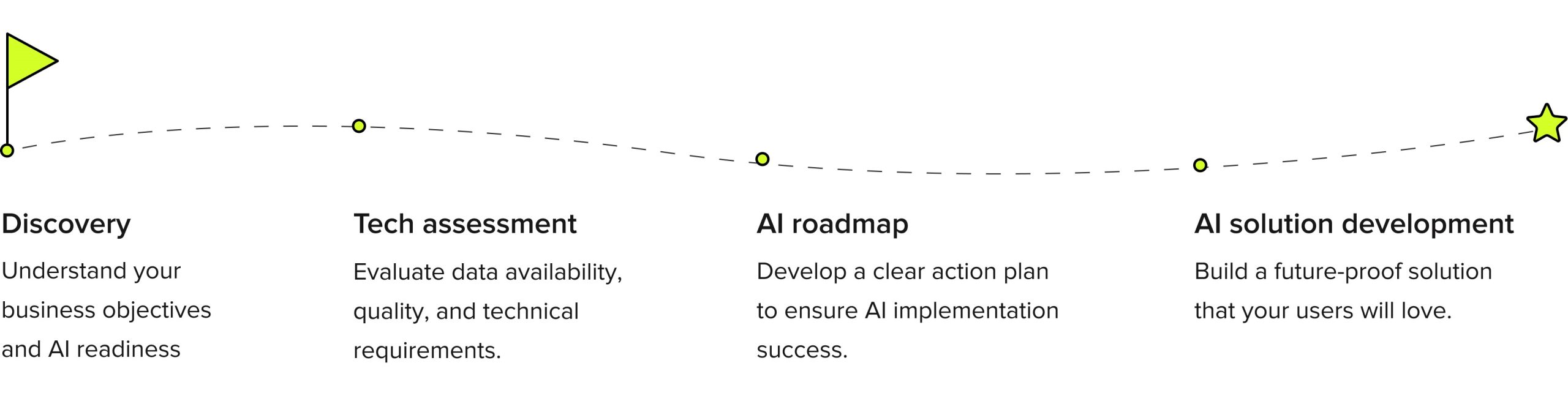 We work with you to understand your goals and define a clear, actionable roadmap for AI implementation.